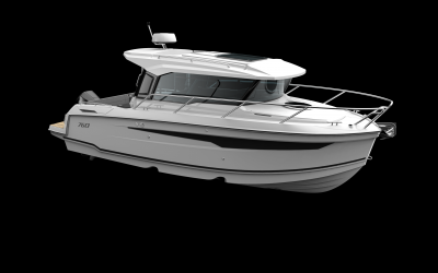 Neues Modell für Motoren von 150 - 300 PS Länge: 7,46 m • Breite: 2,50 m • Gewicht: 1750kg Treibstofftank 230l Wasserskihaken Spüle mit 40l Frischwassertank Kocher Bugdecklucke Ankerrolle Frontcabine mit Doppelkoje Steuerstuhl und Copilotenbank Sitzgruppe...